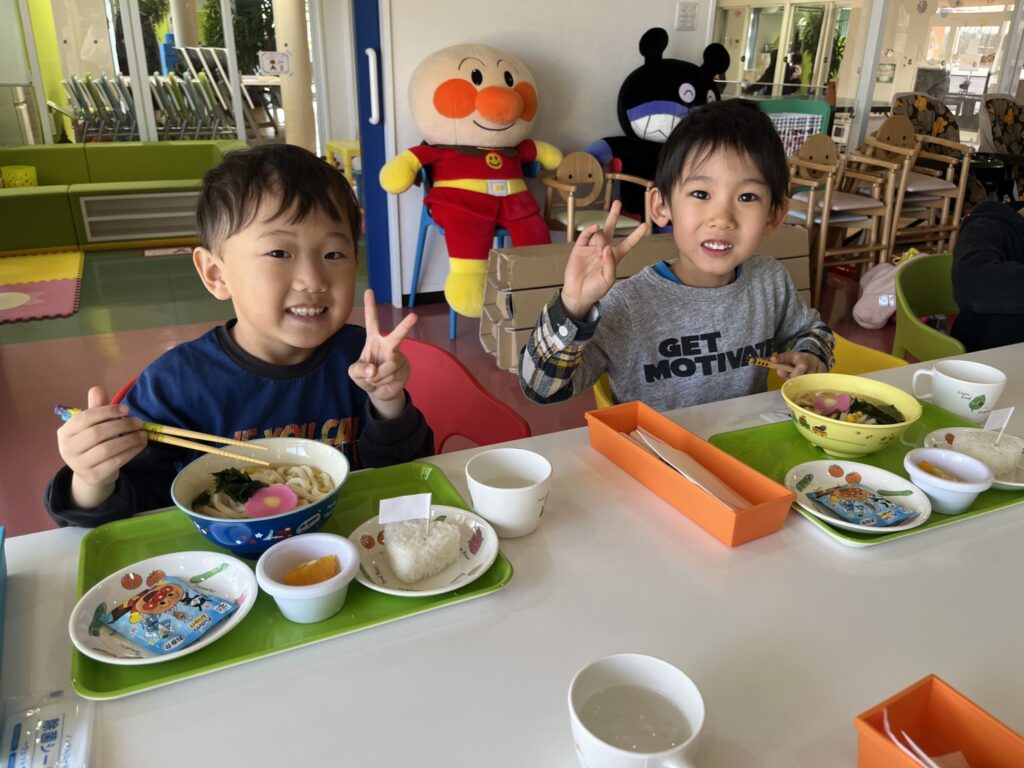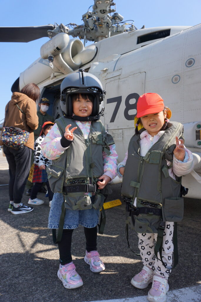 今日は”子どもたちが楽しみにしていた”ワクワクの日”。海上自衛隊駐屯地の見学に行きました。自衛隊のヘリコプターにのせていただき、興味津々で隊員の方の説明を聞いていました。かっこいいヘリコプターに目は釘付けで、目をキラキラ輝かせながら見学していました。隊員の方々のさまざまな仕事の様子を知ることができ、働く人への関心も広がったようです。お子様ランチキノブタさんでオムライスをおいしくいただき、公園でたっぷり体を動かして遊びました🤗