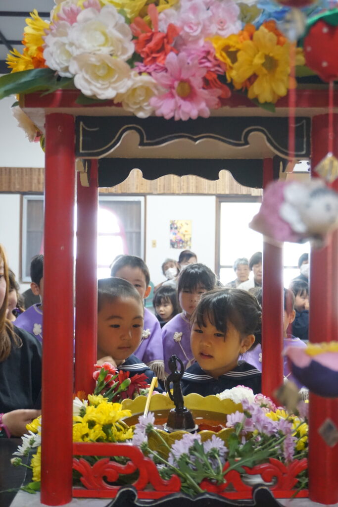 4月8日はのの様の(お釈迦様)お誕生日です。花御堂を飾ったり、歌を歌ったり、誕生仏に甘茶をかけてお祝いしました。春の行事に親しみながら穏やかな時間を過ごしました。