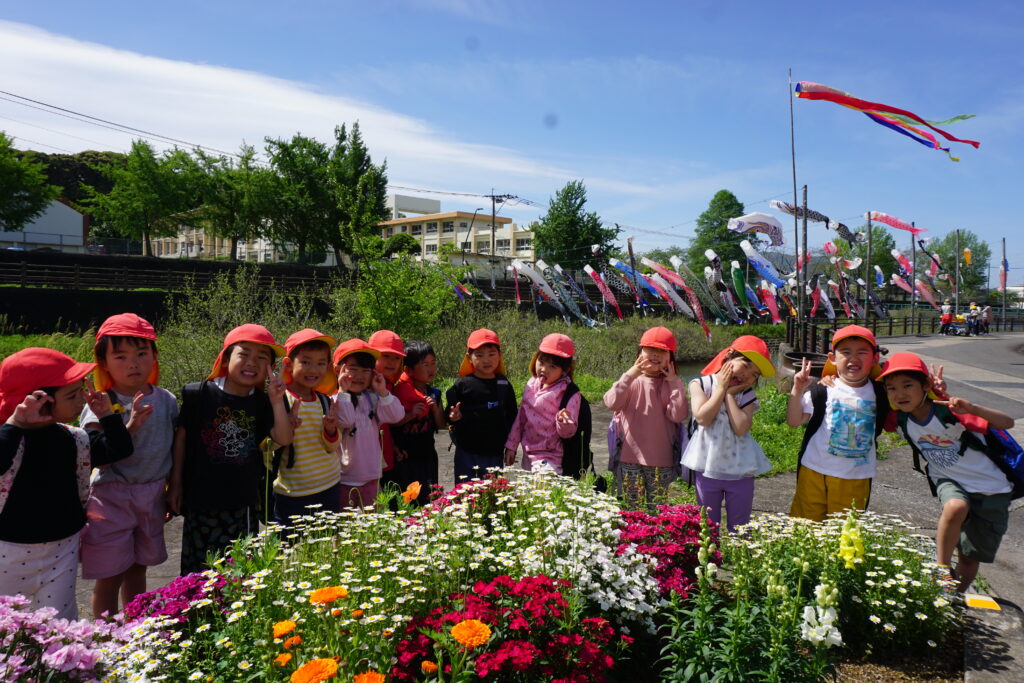 春の陽気の中、『鯉のぼり』を見にお散歩に出かけました。道端に咲く花や虫を見つけると立ち止まってじっと観察し、「きれいだね」「これはなに?」と春の自然に興味をもつ姿が見られました。友だちと手をつないで歩きながら、会話も弾み、季節の変化を感じながら楽しい時間を過ごしました😊